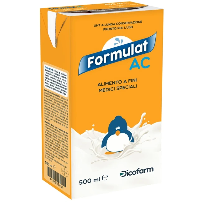 Utilizzare il prodotto sotto controllo medico. Formulat AC è adatto come unica fonte di nutrimento, fin dalla nascita. Il latte materno è l'alimento ideale per il lattante. Qualora l'allattamento al seno non sia possibile o sufficiente, è possibile ricorrere, su consiglio del pediatra, ad un latte formulato. Una preparazione o conservazione non corretta può comportare rischi per la salute. Non riutilizzare il latte eventualmente avanzato nel biberon dopo la poppata.