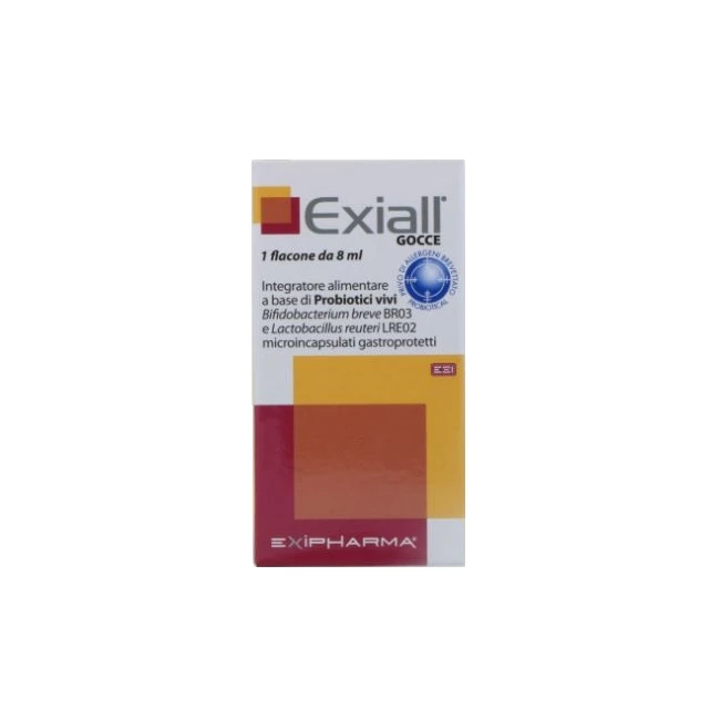 Exiall è un integratore alimentare a base di microrganismi probiotici Bifidobacterium breve BR03 e Lactobacillus reuteri LRE02 specificatamente indicato per favorire l’equilibrio della flora batterica intestinale.