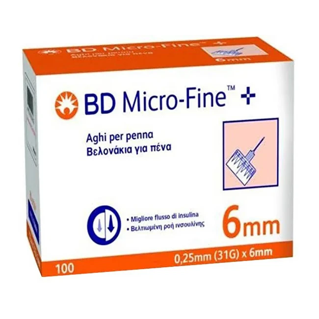 BD Micro-Fine 31 G/6 mm, 0,25 mm x 6 mm. Aghi sterili per penna, migliore flusso di insulina. Compatibili con tutte le penne per il trattamento del diabete. Dispositivo medico.