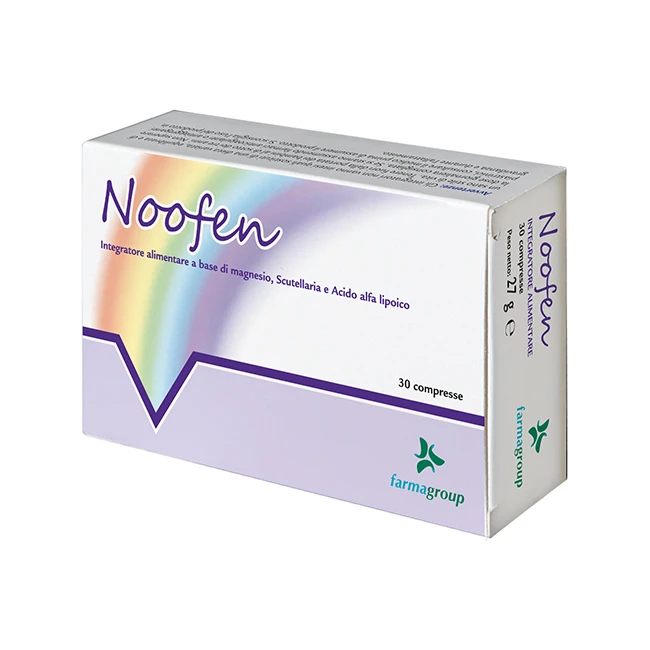 Noofen è un integratore alimentare a base di sostanze ad azione antiossidante, efficaci nel contrastare i danni provocati dai radicali liberi a carico delle membrane cellulari. L'acido alfa-lipoico è un antiossidante che protegge le cellule dai radicali liberi e favorisce la rigenerazione di altri antiossidanti come la vitamina C, vitamina E e glutatione. Il magnesio contribuisce alla normale funzione psicologica e al normale funzionamento del sistema nervoso. La scutellaria baicalensis ha proprietà ansiolitiche, neurostabilizzanti e sedative.