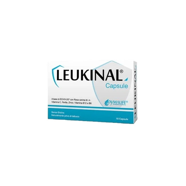 Leukinal capsule è un complemento alimentare a base di echivus con rosa canina tit. in vitamina C, perilla, zinco, vitamina B12 e B6. Leukinal capsule, grazie alla perilla e all'echinacea, contribuisce alle naturali difese dell'organismo. Leukinal capsule, grazie all'echinacea, contribuisce alla funzionalità delle prime vie respiratorie. Leukinal capsule, grazie allo zinco, alla vitamina C, e alle vitamine B6 e B12, contribuisce alla normale funzione del sistema immunitario. Leukinal capsule, grazie all'ontano nero, contribuisce al benessere della gola. Leukinal capsule, grazie allo zinco e alla vitamina C, contribuisce alla protezione delle cellule dallo stress ossidativo. Leukinal capsule, grazie alle vitamine B6 e B12, contribuisce alla riduzione della stanchezza e dell'affaticamento. Leukinal capsule, grazie alla Rosa canina, favorisce un'azione di sostegno e ricostituente.