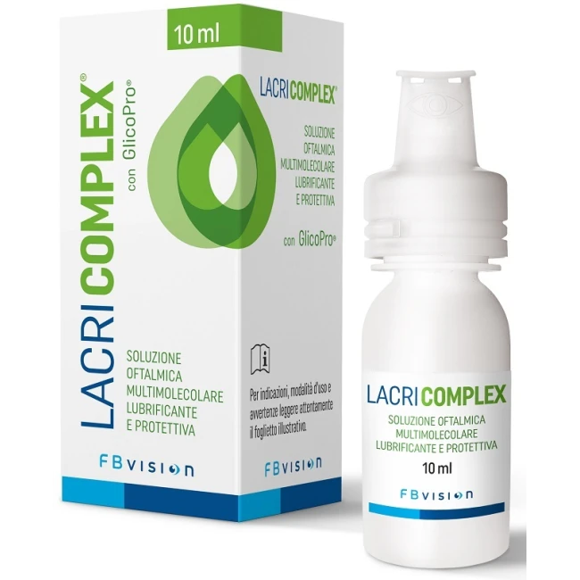 Lacricomplex è una soluzione oftalmica lubrificante, protettiva, idratante, lenitiva e antiossidante, contenente GlicoPro, un complesso multimolecolare a base di proteine, glicosaminoglicani solforati e non solforati veicolato da una base mucinica costituita da idrossipropilmetilcellulosa (HPMC). I glicosaminoglicani, in particolare, costituiscono una parte importante del glicocalice della superficie cellulare, e possono rappresentare dei ligandi per molte molecole come fattori di crescita, citochine, chemochine che modulano la risposta infiammatoria. Lacricomplex contiene pertanto una tripla componente mucinica insieme a una componente mucoproteica e una proteica ad azione lubrificante, idratante, antiossidante e protettiva che risulta utile nel trattamento della secchezza oculare, anche come coadiuvante in presenza di irritazione e infiammazione provocata da condizioni ambientali o da stress meccanici. Lacricomplex, inoltre, favorisce i fisiologici processi riparativi a livello corneale e supporta il ripristino della funzionalità delle terminazioni nervose corneali, che diminuisce in caso di sindrome dell'occhio secco. La soluzione oftalmica è contenuta in un flacone di tipo tecnologico che consente di evitare l'uso di conservanti nel prodotto e permette un'agevole erogazione di tutto il volume di liquido.