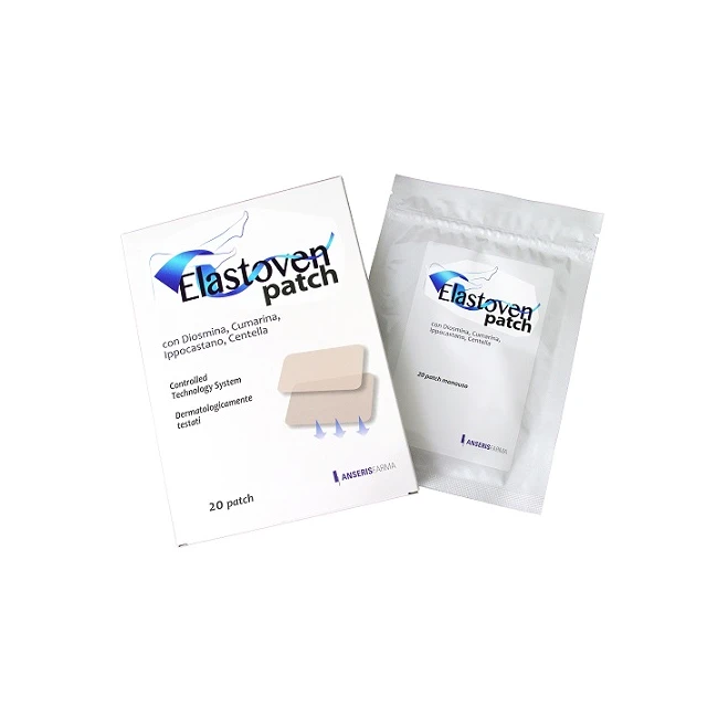 Elastoven patch è un cerotto transdermico per il trattamento di edemi e della stasi venosa e linfatica. A base di cumarina, ribes nero e diosmina, agisce sulla costrizione del vaso e sulla permeabilità, consente il riassorbimento dei liquidi in eccesso (attività protolitica e prolinfocinetica), riduce l'infiammazione.