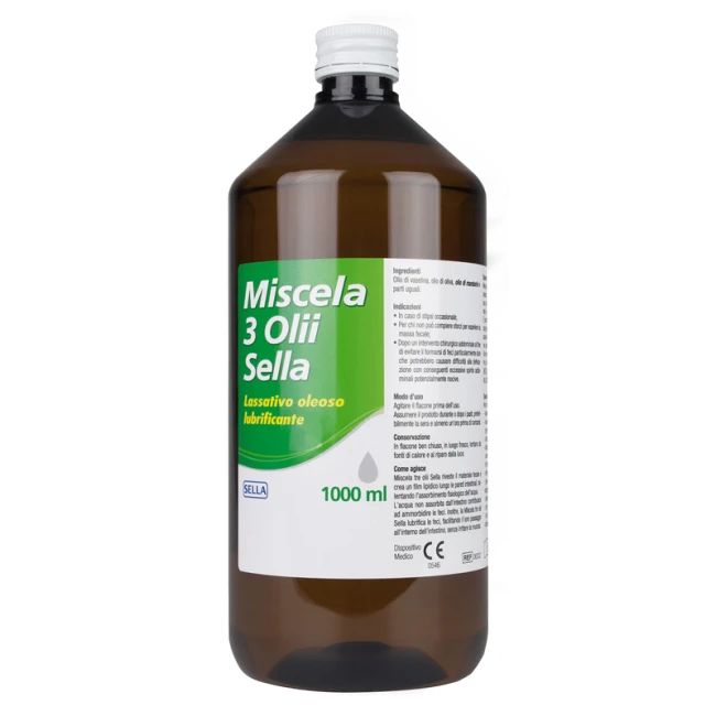 Miscela 3 Olii Sella riveste il materiale fecale e crea un film lipidico lungo le pareti intestinali, rallentando l'assorbimento fisiologico dell'acqua. L'acqua non assorbita dall'intestino contribuisce ad ammorbidire le feci. Inoltre, la Miscela 3 Olii Sella lubrifica le feci, facilitando il loro passaggio all'interno dell'intestino, senza irritare la mucosa.