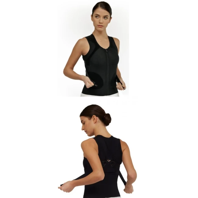 Chiusura a cerniera per facilitare la vestizione e con funzione di rinforzo strutturale.