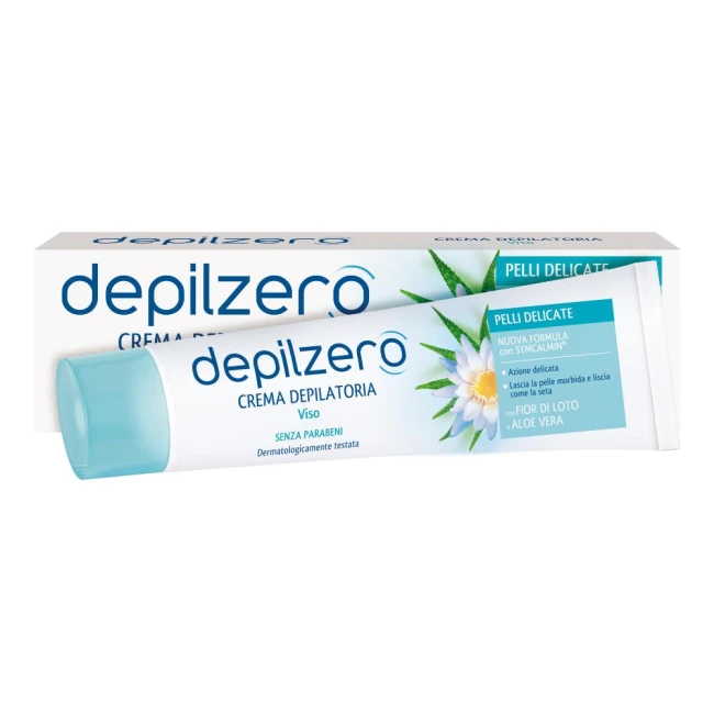 La crema depilatoria viso Depilzero, grazie alla sua formulazione ultradolce, è il prodotto ideale per l'eliminazione dei peli superflui del viso. Il complesso Symcalmin, in sinergia con Fior di Loto e Aloe Vera, protegge la pelle sensibile del viso, svolgendo un’azione calmante e lenitiva e lasciandola morbida e liscia come la seta.
