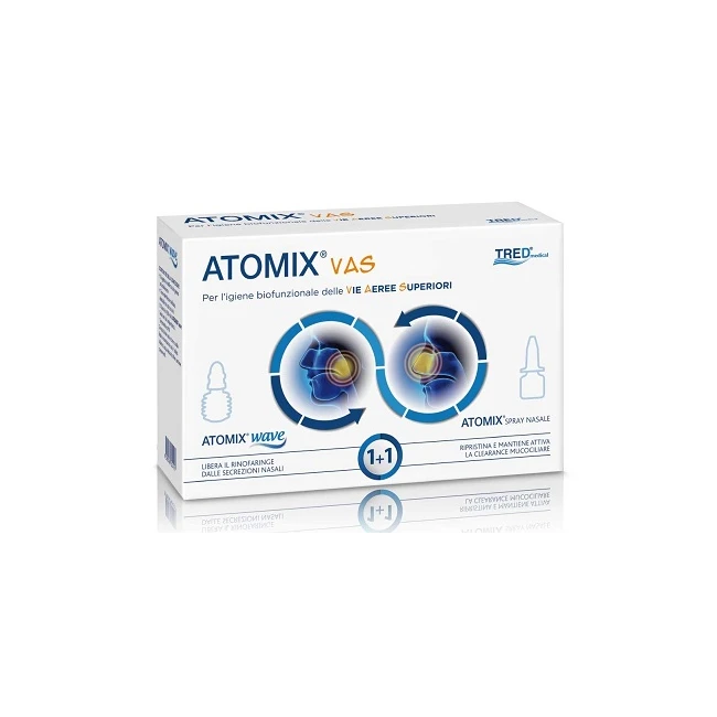 La soluzione biofunzionale specifica per le vie aeree superiori. Contiene un ATOMIX wave e un ATOMIX spray nasale.