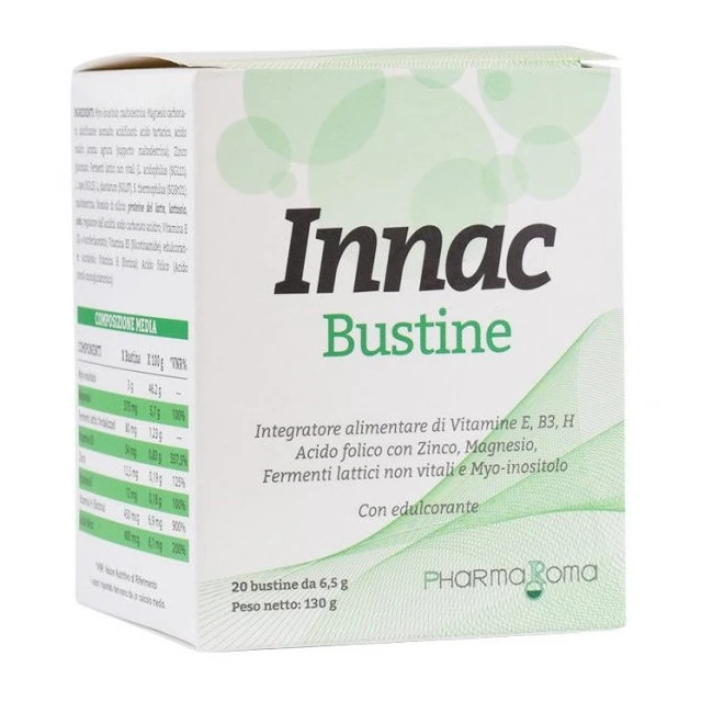 Integratore alimentare di vitamine E, B3, H e acido folico con zinco, magnesio, fermenti lattici non vitali e myo-inositolo indicato per fornire un apporto supplementare di tali nutrienti in casi di carenze o aumentato fabbisogno.