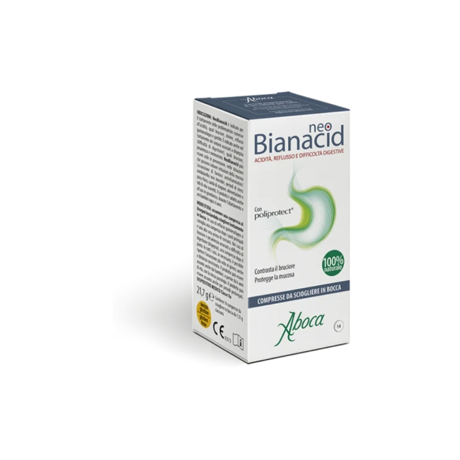 NeoBianacid è indicato per il trattamento delle problematiche connesse all’acidità, quali bruciore, dolore, reflusso gastroesofageo e gastrite. È indicato anche nel trattamento dei sintomi associati a dispepsia (difficoltà di digestione), quali bruciore, pesantezza e meteorismo.