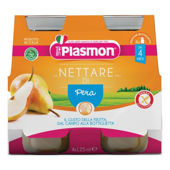 I nettari di frutta Plasmon, arricchiti di vitamina C, mantengono al meglio il sapore e il potere nutritivo della frutta fresca (sali minerali e vitamine, essenziali per la crescita).