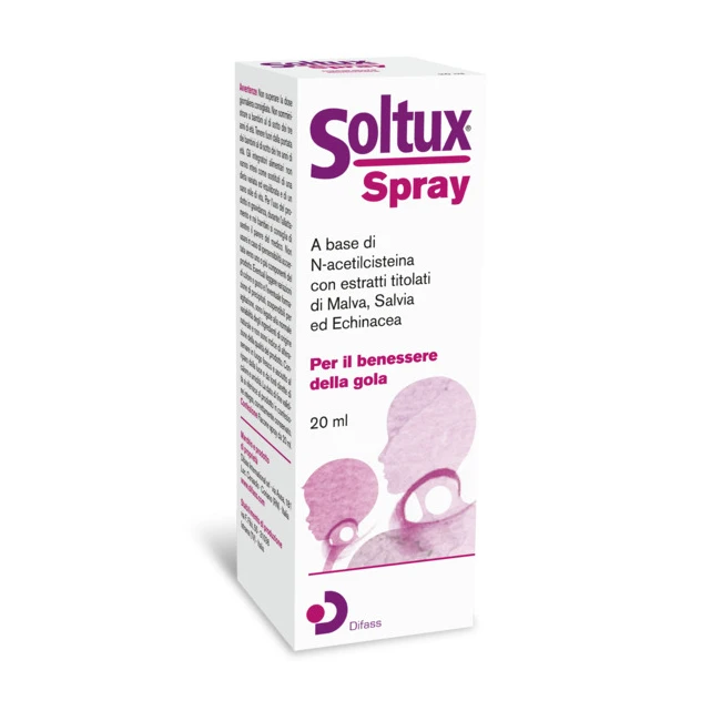 Soltux® Spray è un prodotto a base di N-acetilcisteina, con Malva mucillagine, estratti di Echinacea, Salvia ed olio essenziale di Eucalipto. La Salvia è utile per il benessere della gola. L’azione emolliente e lenitiva dell’Eucalipto contribuisce, insieme alla Malva, alla funzionalità di tutta la mucosa orofaringea. Inoltre, l’Echinacea sostiene le naturali difese organiche.