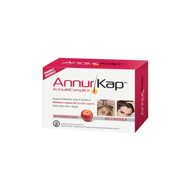 Integratore alimentare a base di AnnurtriComplex estratto naturale di melannurca, con selenio, zinco, rame e biotina.