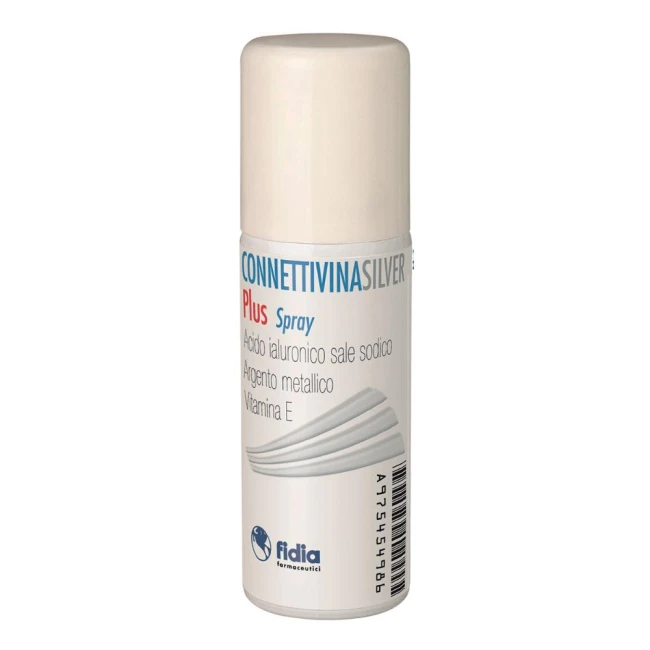 CONNETTIVINASILVER PLUS SPRAY è una sospensione spray per uso topico contenente acido ialuronico (HA), argento metallico e vitamina E.