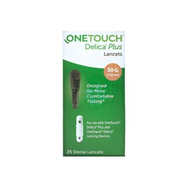 Le lancette sterili delica 30g /0,32 mm sono da utilizzare con il dispositivo pungidito delica plus e onetouch delica. Le lancette hanno un rivestimento in silicone per uno scorrimento fluido sulla pelle. Onetouch delica plus lancette sterili sono indicate per il dispositivo onetouch delica plus per ottenere in modo facile e sicuro una goccia di sangue per la misurazione della glicemia. Le lancette sterili delica pungidito sono costituite da un ago sottile da 0,32mm in acciaio che permette di penetrare senza problemi anche negli strati di pelle più spessi senza provocare dolore cutaneo.