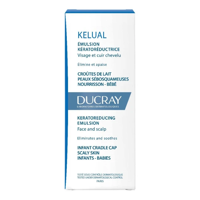 Emulsione fluida per viso e cuoio capelluto per eliminare e lenire crosta lattea e pelle sebo-squamosa.