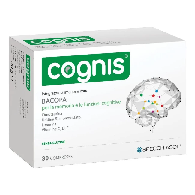 Cognis è un integratore alimentare che contiene bacopa, che contribuisce alla memoria e alle funzioni cognitive. La vitamina C favorisce la funzione psicologica e insieme alla vitamina E partecipa alla protezione delle cellule dallo stress ossidativo. La vitamina D contribuisce al normale assorbimento e utilizzo del fosforo.