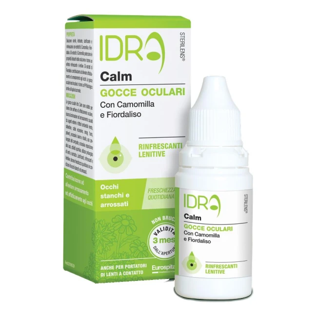Le gocce oculari Idra Calm sono adatte per coloro che soffrono di affaticamento oculare, scarsa lacrimazione ed arrossamento causati da: agenti esterni e fattori ambientali (vento, salsedine, caldo eccessivo, smog, fumo, polveri), eccessivo lavoro o studio, uso prolungato del computer, eccessiva esposizione alla luce, attività sportiva, utilizzo prolungato di lenti a contatto. Lubrificanti, rinfrescanti e lenitive, donano freschezza quotidiana in condizioni di occhi stanchi ed arrossati.