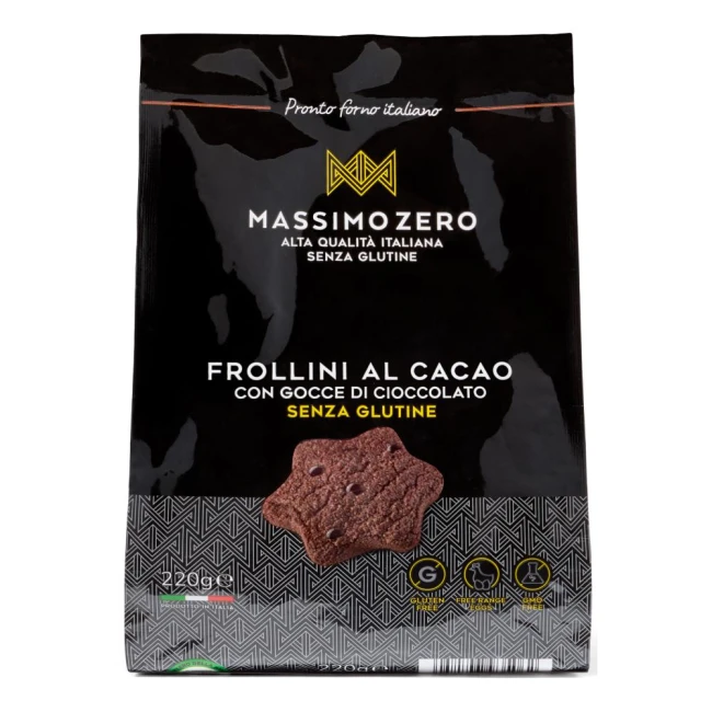 Frollini al cacao, con gocce di cioccolato, senza glutine.