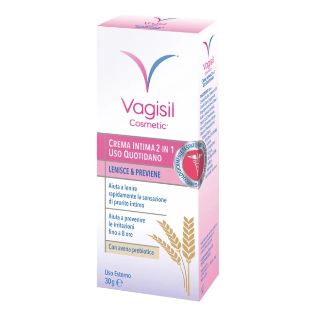 Vagisil Cosmetic Crema Intima 2-in-1 è formulata con avena prebiotica. La sua formula delicata aiuta a lenire rapidamente la sensazione di prurito intimo. Inoltre forma una barriera protettiva fino a 8 ore che aiuta a prevenire irritazioni e fastidi intimi.