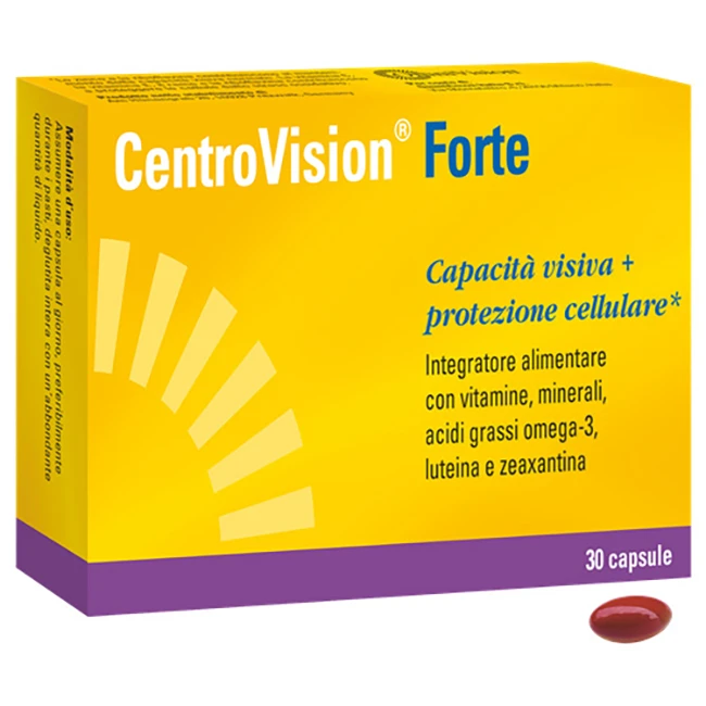 Integratore alimentare con vitamine, minerali, acidi grassi omega-3, luteina e zeaxantina.