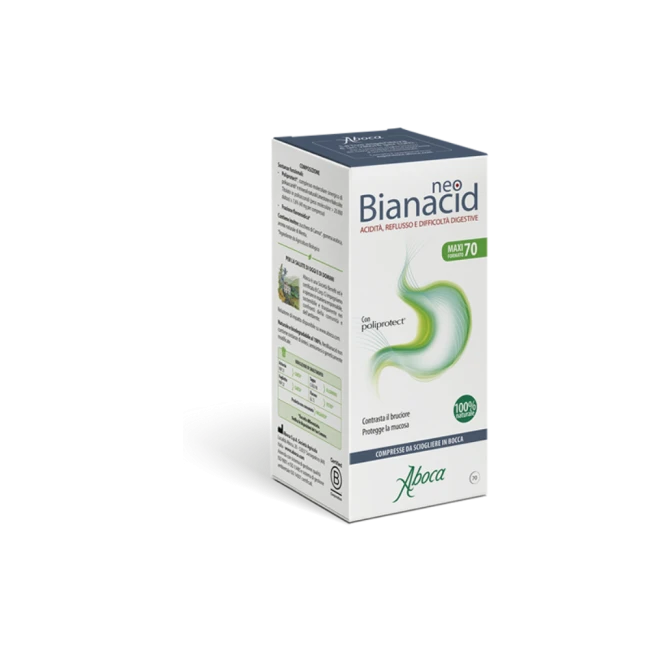 NeoBianacid è un dispositivo medico a base di complessi molecolari vegetali e minerali, che svolge un'azione protettiva e lenitiva della mucosa gastroesofagea utile per contrastare rapidamente il bruciore, il dolore, la sensazione di acidità, ovvero i sintomi tipici dell'irritazione e dell'infiammazione della mucosa stessa. NeoBianacid è un prodotto 100% naturale, biologico, senza glutine e dal gusto gradevole.