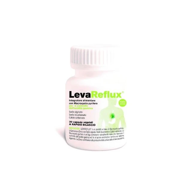 Integratore alimentare a base di Macrocystis pyrifera, L-carnosina e zinco, con sodio alginato, sodio bicarbonato e calcio carbonato.