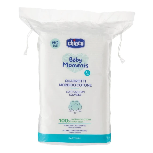 Quadrotti in morbido cotone, puri al 100%, accarezzano dolcemente la pelle del bambino e rimuovono ogni impurità, senza lasciare... Leggi di più