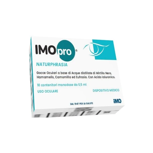 È indicata per: umettare, idratare, lubrificare, rinfrescare e quindi lenire svariate situazioni di discomfort oculare, come a seguito specificate. L'azione combinata dei componenti naturali contenuti nella formulazione allevia l'arrossamento, l'affaticamento e il senso di fastidio agli occhi ed alla mucosa oculare causati da fattori ambientali (inquinamento, smog, esposizione prolungata ai raggi solari, salsedine, acqua clorata, vento, polvere, fumo) o stress visivi conseguenti a ridotto ammiccamento dovuto principalmente ad uso prolungato del computer, studio intenso, guida prolungata. In virtù dei componenti selezionati (ed in particolare grazie alla presenza dell'acido ialuronico e della glicerina vegetale) IMOpro NATURPHRASIA è indicata per coloro che soffrono di secchezza oculare occasionale o dovuta a scarsa lacrimazione ed è in grado di dare sollievo agli occhi, svolgendo un'azione sia idratante che lubrificante. L'instillazione di IMOpro NATURPHRASIA prima di indossare le lenti a contatto ne facilita l'applicazione; inoltre, l'instillazione dopo l'applicazione ne rende più confortevole l'utilizzo, contrastando la sensazione di secchezza. IMOpro NATURPHRASIA è indicata anche per uso frequente e prolungato.