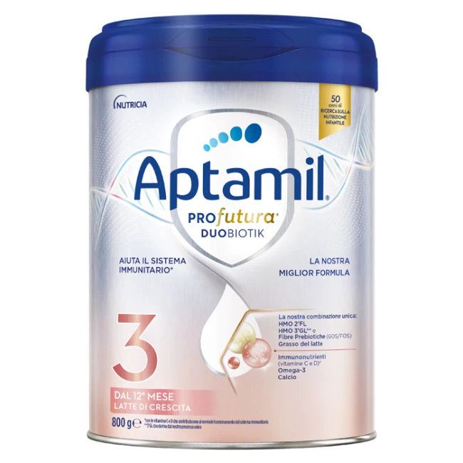 Il latte materno è l'alimento ideale per il bambino ed è raccomandato come alimento esclusivo fino al sesto mese e come componente lattea di una dieta equilibrata durante lo svezzamento e anche dopo l'anno di vita. Aptamil 3 è da intendersi all'interno di una dieta varia ed equilibrata ed uno stile di vita sano, seguendo le indicazioni del Pediatra.
