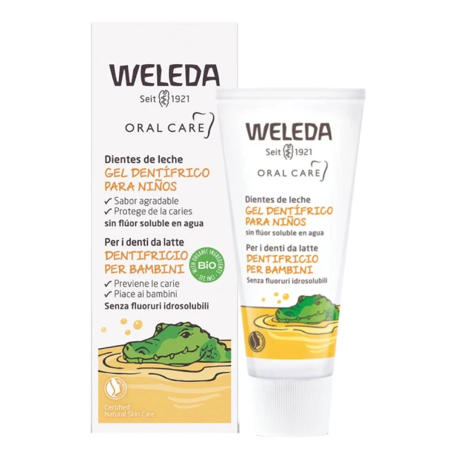 Dentifricio in gel che accompagna la sana crescita dei denti da latte. Formulato solo con ingredienti accuratamente selezionati e sicuri, non reca alcun danno al bambino nel caso in cui venisse ingerito. Dal gusto fresco e gradevole, pulisce delicatamente, igienizza e mantiene il sano equilibrio della bocca. È opportuno consultare il proprio medico pediatra o il dentista per la valutazione di un'adeguata fluoruroprofilassi. Senza fluoruri idrosolubili. Non contiene ingredienti da animali.