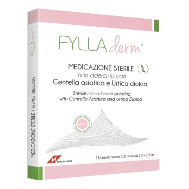 Medicazione sterile non aderente a base di estratti naturali (centella asiatica ed urtica dioica), pronta all'uso e confezionata in busta singola peel-open.