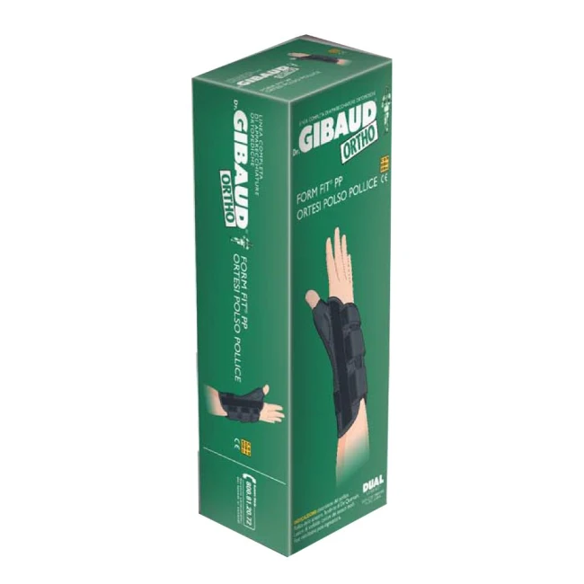 Immobilizzazione relativa in posizione funzionale del polso e del pollice per mezzo di stecche rigide, mantenendo la mobilità delle altre dita e la prensilità della mano. Possibilità di adattamento dell’ortesi grazie alla modellatura delle stecche.