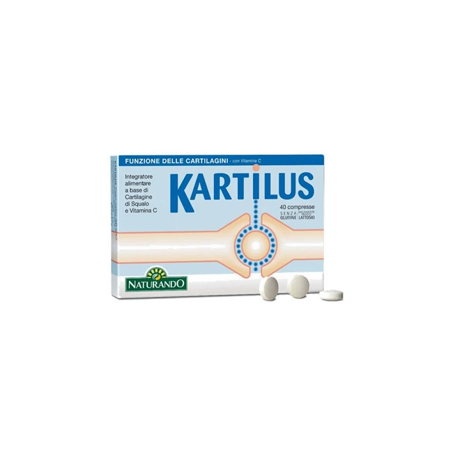 Integratore alimentare di cartilagine di squalo, glucosamina, condroitinsolfato, metilsulfonilmetano e vitamina C utile per apportare una quota integrativa di questi componenti alla dieta quotidiana.