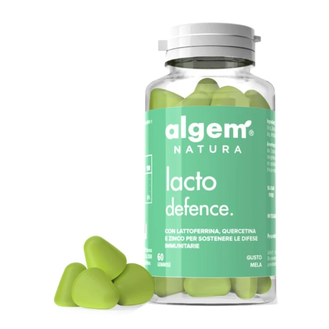 Lattoferrina, quercetina, fruttooligosaccaridi (FOS), zinco gluconato, amido di mais, maltitolo polvere spray dry, maltitolo sciroppo, acqua, aroma mela, colorante naturale clorofilla e curcumina.