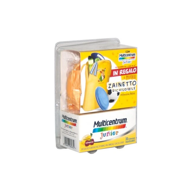 Confezione speciale con zainetto richiudibile - promo 2017Integratore alimentare multivitaminico multiminerale specificatamente formulato in compresse masticabili per bambini dai 4 anni in su.