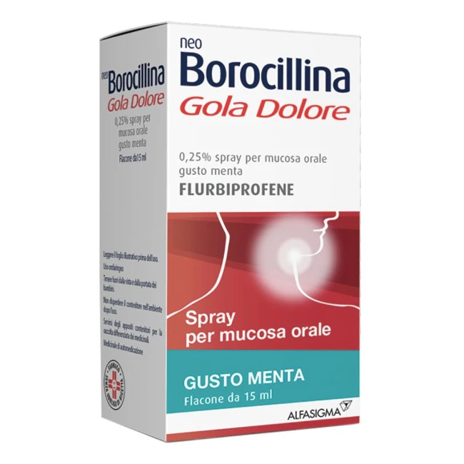 AvvertenzeAlle dosi consigliate, nell’usare il medicinale nelle sue diverse forme farmaceutiche, l’eventuale deglutizione non comporta, di per sé, alcun danno per il paziente, in quanto tali dosi sono ampiamente inferiori a quelle comunemente utilizzate nei trattamenti con il flurbiprofene per via sistemica. In pazienti con insufficienza renale, cardiaca o epatica il medicinale NEO BOROCILLINA GOLA DOLORE deve essere utilizzato con cautela. È consigliato non associare il medicinale con i FANS. L’uso, specie se prolungato, del prodotto può dare origine a fenomeni di sensibilizzazione o di irritazione locale; in tali casi occorre interrompere il trattamento e consultare il medico per istituire, se necessario, una terapia idonea. Non usare per trattamenti protratti. Dopo breve periodo di trattamento senza risultati apprezzabili consultare il medico. NEO BOROCILLINA GOLA DOLORE collutorio e NEO BOROCILLINA GOLA DOLORE spray per mucosa orale (tutte le presentazioni) contengono: - 960 mg di etanolo per 10 ml di collutorio. Può causare sensazione di bruciore sulla pelle danneggiata. - olio di ricino poliossidrato idrogenato che può causare reazioni sulla pelle localizzate. - paraidrossi benzoati che possono causare reazioni allergiche (anche ritardate). NEO BOROCILLINA GOLA DOLORE 0,25% spray per mucosa orale gusto arancia e miele e NEO BOROCILLINA GOLA DOLORE 0,25% spray per mucosa orale gusto limone e miele contengono anche il colorante giallo tramonto (E110), che può causare reazioni allergiche.NEO BOROCILLINA GOLA DOLORE 8,75 mg pastiglie (tutte le presentazioni) contiene isomalto: i pazienti affetti da rari problemi ereditari di intolleranza al fruttosio, non devono assumere questo medicinale.