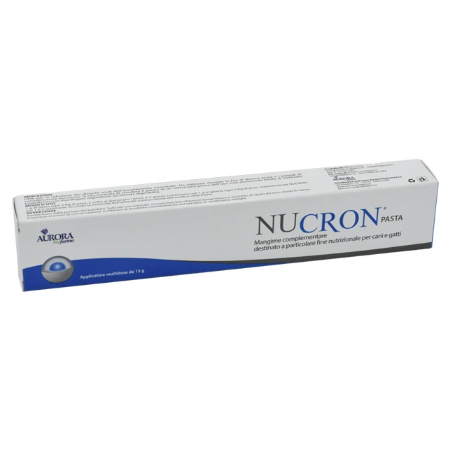 1 g di pasta ogni 5 kg di peso, 2 volte al giorno per i primi 3-5 giorni. Continuare con 1 g al giorno ogni 5 kg di peso. Somministrare Nucron per 1 o 2 settimane, secondo la necessità dell'animale o prescizione del medico veterinario.