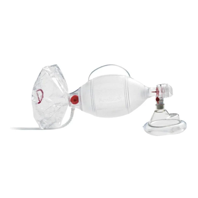Dispositivo per rianimazione monouso, per adulti. -Riduce la fatica durante la ventilazione manuale, in particolare se di lunga durata, grazie alla forma ergonomica, alla maggiore superficie per la presa, alla cinghia che contribuisce al facile utilizzo anche per chi ha mani molto piccole e al suo ridotto peso;