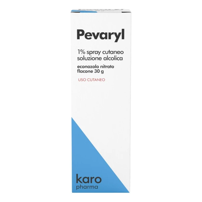 AvvertenzeTutte le forme farmaceutiche di PEVARYL sono indicate solo per uso esterno. PEVARYL non è per uso oftalmico o orale. In caso di reazione di sensibilizzazione o irritazione, interrompere l’uso del prodotto. Econazolo nitrato polvere contiene talco. Evitarne l’inalazione per prevenire irritazione delle vie aeree, soprattutto nei bambini e nei neonati. L'applicazione delle forme spray deve essere fatta evitando di inalare il prodotto e di farne un uso eccessivo ed improprio. Informazioni importanti su alcuni eccipienti PEVARYL 1% crema contiene idrossianisolo butilato e acido benzoico. Questo medicinale contiene idrossianisolo butilato. Può causare reazioni cutanee locali (ad es. dermatiti da contatto) o irritazione degli occhi e delle mucose. Questo medicinale contiene 60 mg di acido benzoico in ogni tubo da 30 g che è equivalente a 2 mg/g di crema. L’acido benzoico può causare irritazione locale. L’acido benzoico può aumentare l'ittero (ingiallimento della pelle e degli occhi) nei neonati fino a 4 settimane di età. PEVARYL 1% spray cutaneo, soluzione alcolica contiene etanolo, glicole propilenico e profumo. Questo medicinale contiene 49,5% di etanolo, equivalente a 0,495 mg/ml. Può causare sensazione di bruciore sulla pelle danneggiata. Questo medicinale contiene 983,0 mg di glicole propilenico per dose unitaria, che è equivalente a 491,5 mg/g. Il glicole propilenico può causare irritazione locale. Questo medicinale contiene una fragranza a sua volta contenente linalolo, citronellolo, 3-metil-4-(2,6,6-trimetil-2-cicloesen-1-il)-3-buten-2-one, geraniolo, idrossicitronellale, cumarina, benzil salicilato, aldeide exil cinnamica, d-Limonene, citrale, alcol cinnamilico, liliale, eugenolo, benzil beanzoato, isoeugenolo, farnesolo, alcol benzilico e cinnammale. Linalolo, citronellolo, 3-metil-4-(2,6,6-trimetil-2-cicloesen-1-il)-3-buten-2-one, geraniolo, idrossicitronellale, cumarina, benzil salicilato, aldeide exil cinnamica, d-Limonene, citrale, alcol cinnamilico, liliale, eugenolo, benzil beanzoato, isoeugenolo, farnesolo, alcol benzilico e cinnammale possono causare reazioni allergiche. PEVARYL 1% polvere cutanea contiene profumo Questo medicinale contiene una fragranza a sua volta contenente linalolo, citronellolo, 3-metil-4-(2,6,6-trimetil-2-cicloesen-1-il)-3-buten-2-one, geraniolo, idrossicitronellale, cumarina, benzil salicilato, aldeide exil cinnamica, d-Limonene, citrale, alcol cinnamilico, liliale, eugenolo, benzil beanzoato, isoeugenolo, farnesolo, alcol benzilico e cinnammale. Linalolo, citronellolo, 3-metil-4-(2,6,6-trimetil-2-cicloesen-1-il)-3-buten-2-one, geraniolo, idrossicitronellale, cumarina, benzil salicilato, aldeide exil cinnamica, d-Limonene, citrale, alcol cinnamilico, liliale, eugenolo, benzil beanzoato, isoeugenolo, farnesolo, alcol benzilico e cinnammale possono causare reazioni allergiche. PEVARYL 1% emulsione cutanea contiene idrossianisolo butilato, acido benzoico e profumo Questo medicinale contiene idrossianisolo butilato. Può causare reazioni sulla pelle localizzate (ad es. dermatiti da contatto) o irritazione agli occhi e alle mucose. Questo medicinale contiene 60 mg di acido benzoico in ogni flacone da 30 g che è equivalente a 2 mg/g di crema. L’acido benzoico può causare irritazione locale. L’acido benzoico può aumentare l'ittero (ingiallimento della pelle e degli occhi) nei neonati fino a 4 settimane di età. Questo medicinale contiene una fragranza a sua volta contenente linalolo, citronellolo, 3-metil-4-(2,6,6-trimetil-2-cicloesen-1-il)-3-buten-2-one, geraniolo, idrossicitronellale, cumarina, benzil salicilato, aldeide exil cinnamica, d-Limonene, citrale, alcol cinnamilico, liliale, eugenolo, benzil beanzoato, isoeugenolo, farnesolo, alcol benzilico e cinnammale. Linalolo, citronellolo, 3-metil-4-(2,6,6-trimetil-2-cicloesen-1-il)-3-buten-2-one, geraniolo, idrossicitronellale, cumarina, benzil salicilato, aldeide exil cinnamica, d-Limonene, citrale, alcol cinnamilico, liliale, eugenolo, benzil beanzoato, isoeugenolo, farnesolo, alcol benzilico e cinnammale possono causare reazioni allergiche.