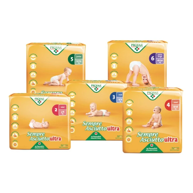 Pannolini anallergici, fluff super assorbente, con nuove bande elastiche per una forma più anatomica che segue il bimbo nei suoi movimenti.