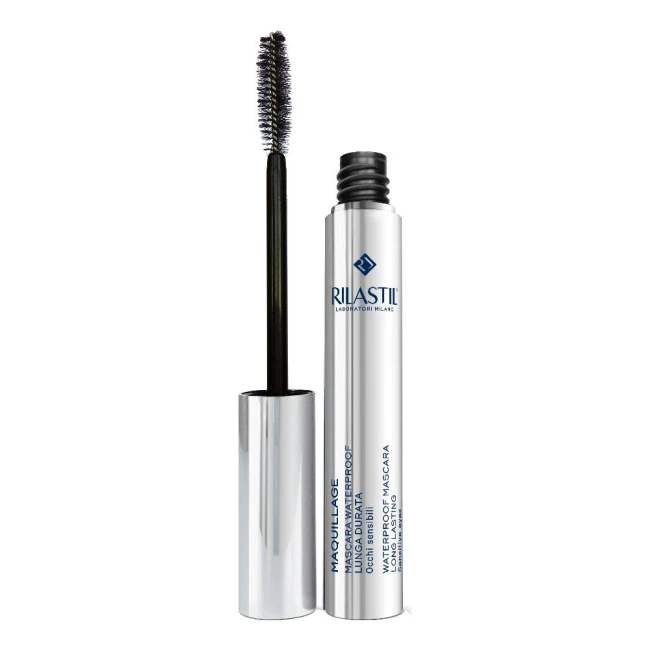 Rilastil Maquillage Mascara Waterproof ad effetto volumizzante ed allungante, esalta la bellezza degli occhi, resistendo all'acqua, al sudore e alle lacrime. Per occhi sensibili. Tenuta perfetta. A lunga durata.