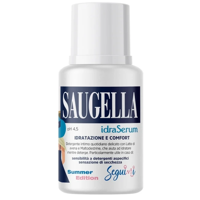 Saugella idraSerum rispetta e mantiene l'equilibrio dell'area vulvare in età fertile e in menopausa. La formula è adatta anche al lavaggio quotidiano del corpo, anche in caso di pelli sensibili.