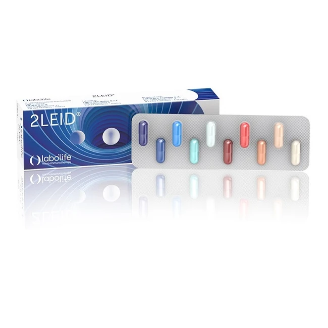 Confezione da 30 capsule, presentate in tre blister da 10 capsule l’uno. Le capsule, in gradazione di colore, sono numerate da 1 a 10.