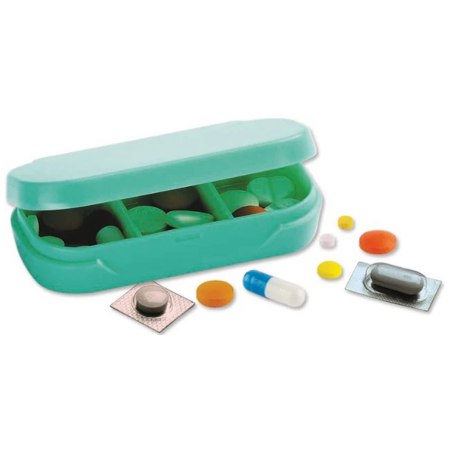 Mini portapillole tascabile pratico, che permette di portare sempre con se i farmaci in capsule o compresse, discreto e sicuro, con chiusura a scatto.