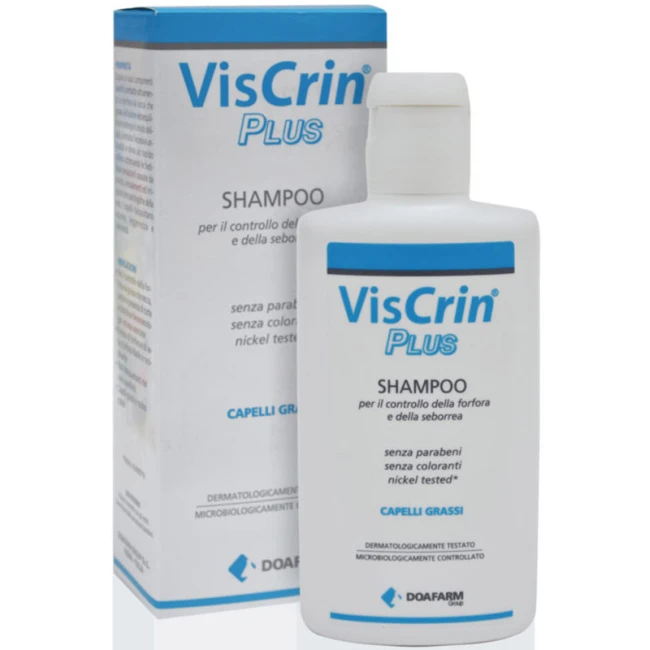 VISCRIN PLUS shampoo grazie ai suoi componenti specifici combatte attivamente la forfora sia secca che grassa. Ad azione seboequilibrante deterge in modo delicato, contrasta l’eccessiva untuosità e dona un rapido sollievo attenuando le fastidiose sensazioni causate da prurito, arrossamenti ed irritazioni non patologiche della cute. I capelli riacquistano volume, leggerezza e luminosità. Senza parabeni, senza coloranti, senza profumo, nickel tested.