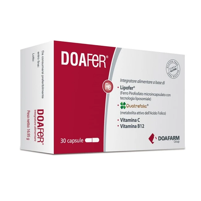 Integratore alimentare a base di Ferro, Vitamina C, Folati e Vitamina B12, indicato nei casi di carenza di ferro e prevenzione e trattamento delle anemie.