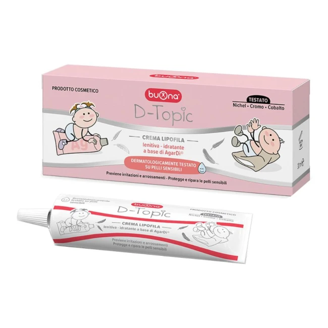 Crema lipofila, lenitiva e idratante, a base di AgarDì (complesso brevettato di argento colloidale e vitamine liposolubili naturali estratte da Agaricus bisporus).