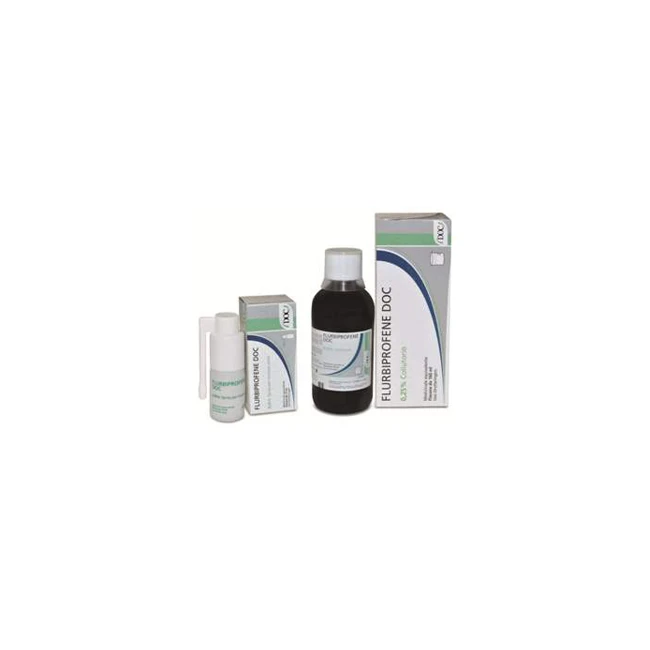 FLURBIPROFENE DOC 0,25% Collutorio 100 ml di soluzione contengono: Principio attivo: Flurbiprofene 0,25 g. FLURBIPROFENE DOC 0,25% Spray per mucosa orale 100 ml...