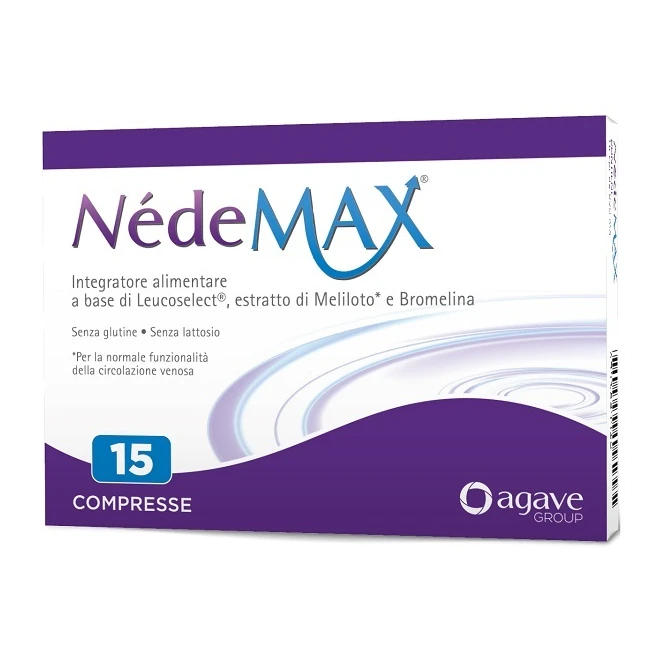 Integratore alimentare a base di Leucoselect (leucocianidine), meliloto e bromelina. NédeMAX è indicato in tutti i casi di insufficiente apporto nella dieta o aumentato fabbisogno di tali nutrienti. La Vitis vinifera (da cui sono estratte le leucocianidine) e il meliloto contribuiscono a mantenere la normale funzionalità del microcircolo. La Vitis vinifera contribuisce alla riduzione del senso di pesantezza delle gambe. Il meliloto favorisce la normale funzionalità della circolazione venosa e il drenaggio dei liquidi corporei.