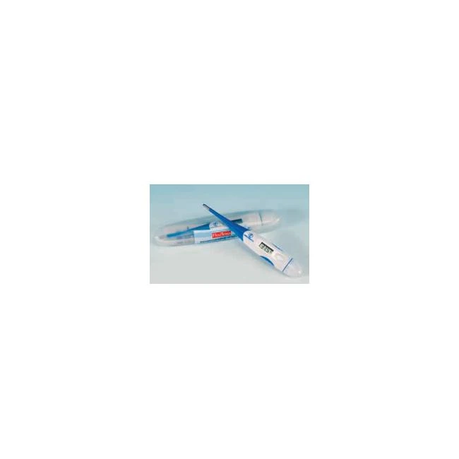 termometro elettronico digitale con sonda flessibile, in astuccio protettivo trasparente.